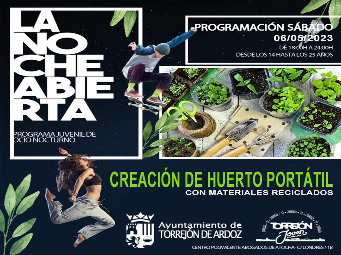 • Si te interesa el mundo de la jardinería y agricultura urbana y quieres pasar una divertida tarde en grupo, no te pierdas “La Noche Abierta”, de este sábado, 6 de mayo. La cita tendrá lugar a partir de las 18:00 horas en el Centro Polivalente Abogados de Atocha. También habrá juegos de mesa, a cargo de la Asociación Juvenil Místicos de Arkat, partidas de PS4, futbolín y ping-pong
