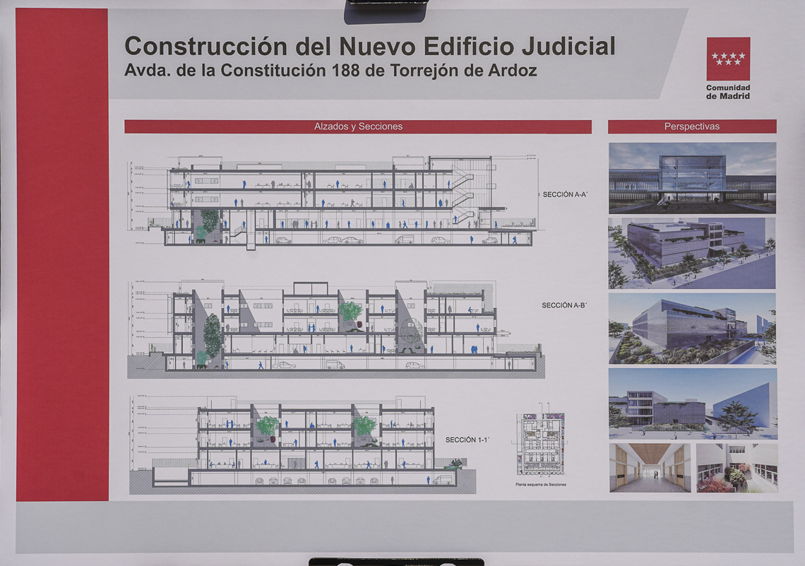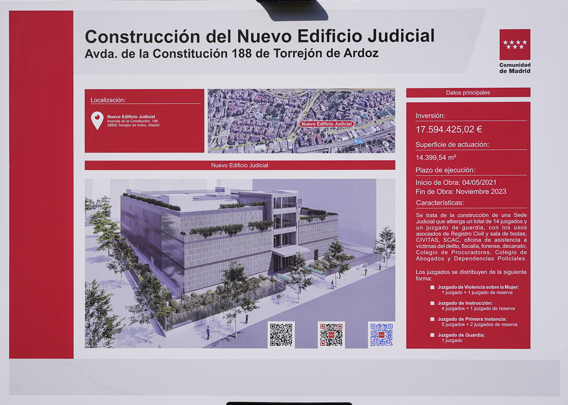 • La Comunidad de Madrid avanza en la construcción del nuevo gran edificio judicial de Torrejón de Ardoz, una vez que han finalizado las obras de su estructura. Las obras ya se encuentran ejecutadas al 25% y finalizarán a finales del próximo año
