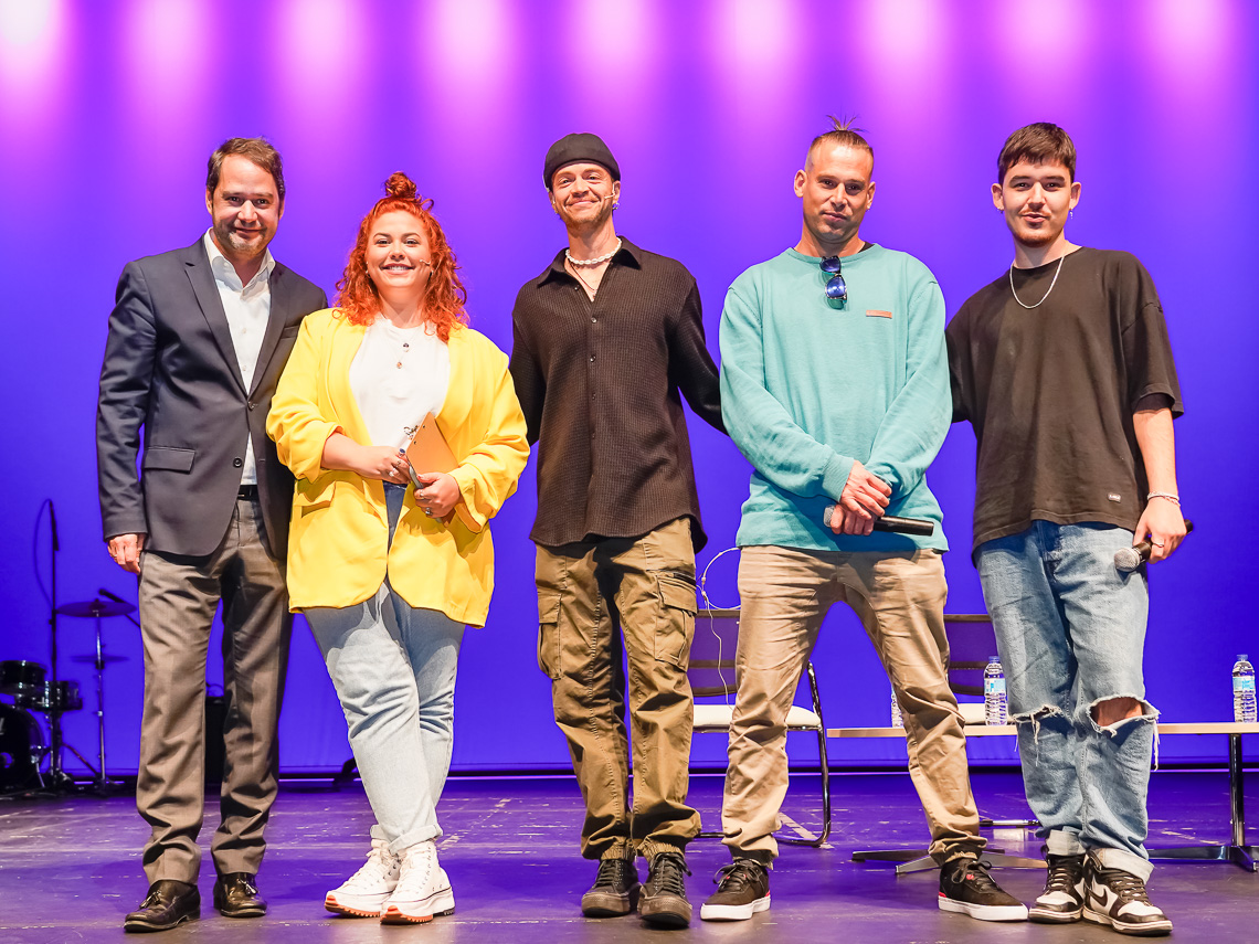 Celebrada la jornada formativa y de sensibilización sobre Bullying bajo el lema “Buentrato = No hay maltrato” con la participación de jóvenes referentes, como Mara Jiménez, Ian e Invert que difunden su mensaje a través de las redes sociales. La cita, organizada por la Concejalía de Bienestar del Ayuntamiento de Torrejón de Ardoz, ha tenido lugar esta mañana y también ha contado con la presencia de los alumnos de los IES León Felipe, Isaac Peral, Valle Inclán y del colegio Jaby Además, ha estado amenizada por la música de “Educapop” y voz en directo de “Ethico”, quien acompañando a Invert, han hecho disfrutar a los asistentes de “Freestyle”, a través de términos y conceptos utilizados en la propia jornada.