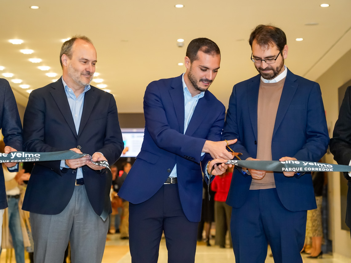 Cine Yelmo inaugura en el Parque Corredor sus 8 nuevas salas de cine “Premium”, una experiencia más completa en la que el espectador podrá disfrutar de más espacio y comodidad mientras ve la película. Además, la exhibidora ha elegido este centro comercial para convertir este cine en el primero de formato Premium con cocina propia de su cadena. Todo ello, ha servido para dar trabajo a un total de 27 personas, de las cuales la mayoría son de Torrejón de Ardoz. El alcalde, Alejandro Navarro Prieto, acompañado por el concejal de Urbanismo, Vivienda y Juventud, Víctor Miranda y el edil de Cultura, José Antonio Moreno, ha asistido esta mañana a la inauguración, acompañado por el director de comercialización de Cine Yelmo, Samuel Bolaños; el director de inversiones, crecimiento y planificación estratégica de Cine Yelmo, Jaime Gerbolés, representantes de la propiedad Redevco y personalidades del sector que no han querido perderse esta nueva apuesta por la cultura cinematográfica en Torrejón de Ardoz. Una innovadora inversión que se enmarca dentro de la ambiciosa reforma del área de ocio y restauración del centro comercial, que está a punto de finalizar.