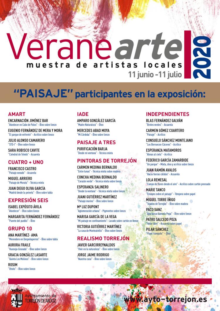 Que el coronavirus no te prive del arte. Continúa “Veranearte. Muestra de artistas locales” con la exposición de pintura virtual “Paisaje”. La muestra está compuesta por cuadros de artistas de diferentes colectivos de pintura, como Amart, Cuatro + uno, Expresión Seis, Grupo 10, Kristallos, IADE, Pintoras de Torrejón y Realismo Torrejón, más pintores independientes y se podrá conocer hasta el próximo 11 de julio pulsando AQUÍ.