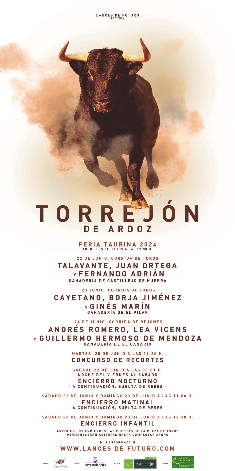 Este año encabezan los carteles grandes figuras del toreo, como Alejandro Talavante (número 3 del escalafón) y Juan Ortega (número 5 del escalafón) y Fernando Adrián, triunfador de la Corrida de la Beneficiencia, formarán el cartel que abrirá la feria el sábado 22 de junio con toros de Castillejo de Huebra.
