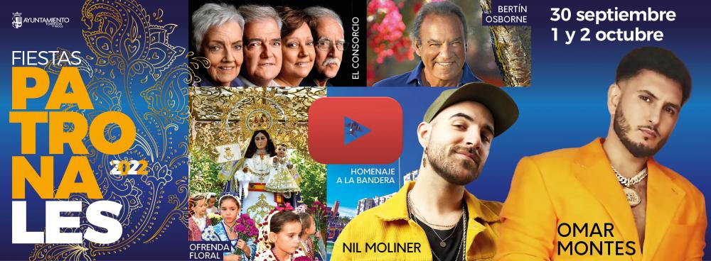 Desde este viernes 30 de septiembre al domingo 2 de octubre llegan las Fiestas Patronales con los 4 grandes conciertos de Omar Montes, Nil Moliner, El Consorcio y Bertín Osborne, además del Homenaje a la Bandera, entre otros eventos