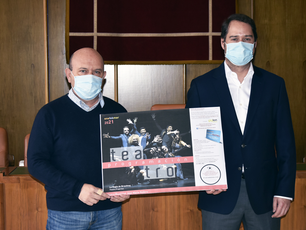 El Teatro Municipal José Mª Rodero reabre sus puertas después del aplazamiento de los primeros espectáculos del nuevo trimestre a causa de la borrasca Filomena y tras una Navidad en la que unas 15.000 personas, especialmente los más pequeños, han disfrutado de los espectáculos programados. Así, el próximo 22 de enero, se inicia una nueva etapa con la programación trimestral de enero a marzo. Todo ello, manteniendo las medidas anticovid como intensificar la limpieza tanto de la sala, zonas comunes y aseos, reducción del aforo para mantener distancia de seguridad y potenciar la reserva on line para facilitar la localización y elección de las butacas libres, entre otras medidas. El alcalde, Ignacio Vázquez, y el responsable del Teatro y segundo teniente de alcalde, Valeriano Díaz, han presentado esta mañana la nueva programación para enero, febrero y marzo. Un brillante programa en el que destacan nombres, como El Brujo, Els Joglars, Jorge Javier Vázquez, además de grandes dosis de humor y muchos y excelentes espectáculos musicales.