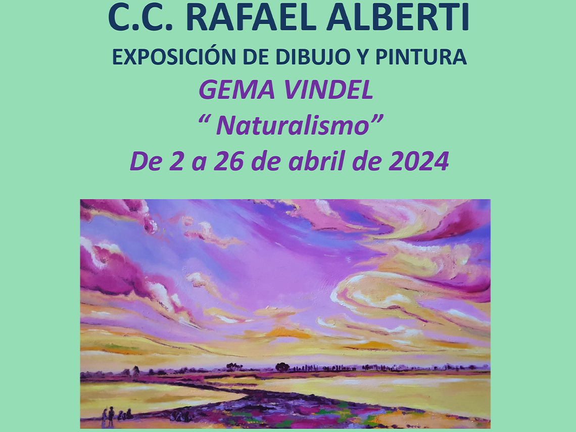 • Asimismo, la autora local, Gema Vindel, nos trae su obra “Naturalismo”, pudiéndose visitar en el Centro Cultural Rafael Alberti hasta el 26 de abril, en horario de lunes a viernes, de 9:00 a 21:00 horas y sábados de 10:00 a 14:00 horas