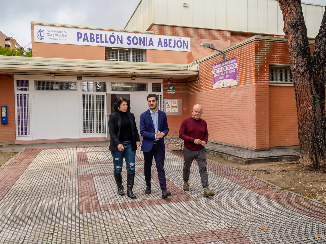 El alcalde, Alejandro Navarro Prieto, ha presentado esta mañana, tal y como se comprometió, el arreglo y renovación de la cubierta, con una inversión de 302.902 euros, del Pabellón M4-Sonia Abejón que sufría goteras. El regidor torrejonero ha estado acompañado de Valeriano Díaz, concejal de Obras, Limpieza Urbana, Administración y Contratación, y Miriam Gutiérrez, concejala de Turismo, que han podido comprobar, en este día lluvioso, el buen resultado de los trabajos realizados sobre la cubierta con una superficie de 2.516 m2 cuadrados.