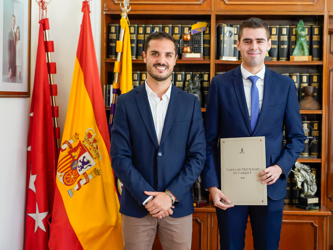 El alcalde, Alejandro Navarro Prieto recibe al torrejonero, Roberto Gutiérrez, finalista de los Premios Jóvenes Juristas