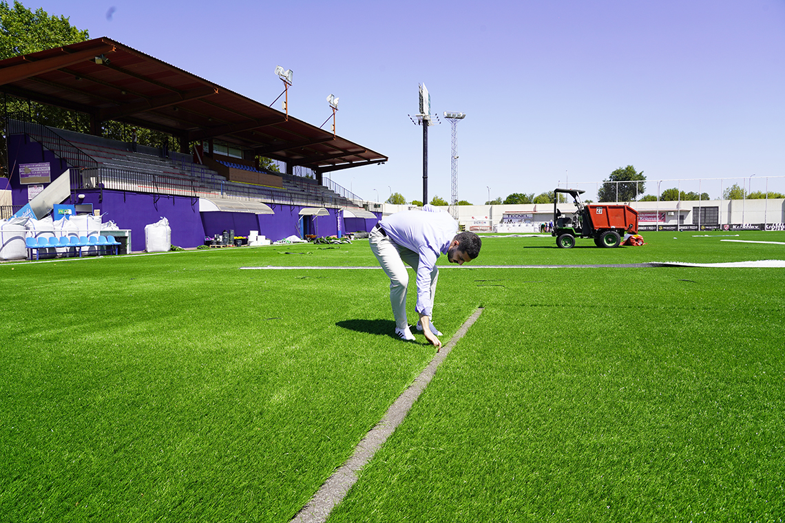 Aprovechando el parón veraniego de competiciones deportivas, se está renovando el césped artificial del Campo de Fútbol Las Veredillas que estaba muy deteriorado por su uso intensivo. El nuevo césped se instala sobre una superficie de 7.600 metros cuadrados y es de última generación, tipo Xtreme XP60, modelo FIFA, muy resistente a las inclemencias meteorológicas y al desgaste por su utilización prolongada.