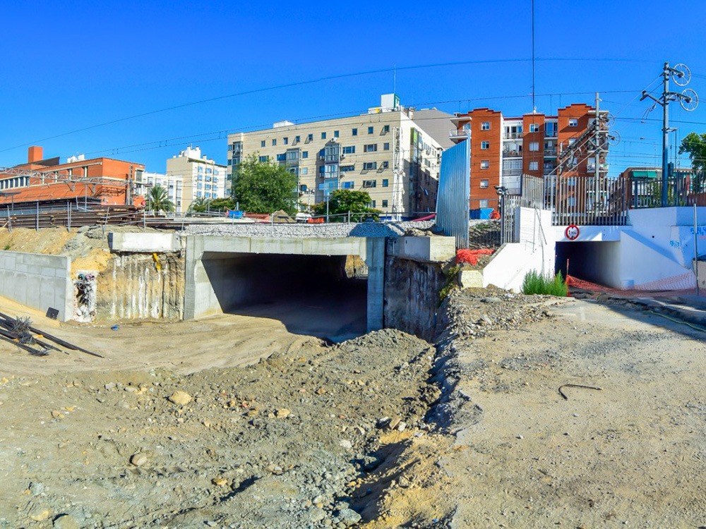 Torrejón de Ardoz, 23 de agosto de 2019. El nuevo túnel al final de la calle Enmedio contará con 2 carriles, uno por cada sentido de 3,15 metros de anchura, una acera peatonal de 2,7 metros, en total 9 metros de ancho, y tendrá una altura de 3,5 metros, así como pendientes adecuadas. Se construye junto al existente y ambos permanecerán operativos en función de las necesidades de la ciudad.