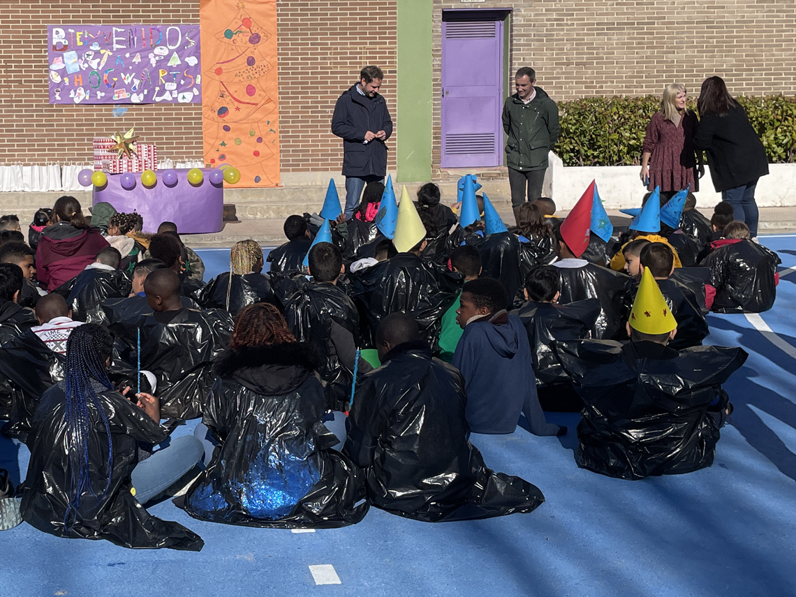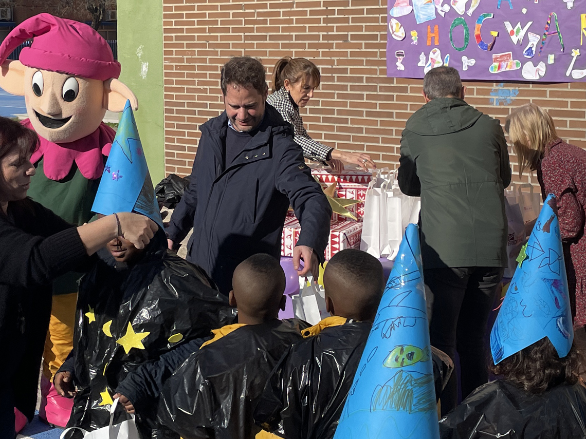 El Ayuntamiento de Torrejón de Ardoz pone en marcha, un año más, un servicio de comedor escolar gratuito para menores de familias vulnerables, durante el periodo de Navidad con un total de 140 participantes. Se trata de una iniciativa del Consistorio torrejonero, que tiene por objetivo garantizar a los menores de familias en situación de vulnerabilidad social una alimentación equilibrada durante el cierre navideño de los comedores escolares. El alcalde, Ignacio Vázquez, y el concejal de Bienestar, Educación e Inmigración, Rubén Martínez, acompañados de Los Guachis han visitado esta mañana el programa el colegio Ramon y Cajal, donde han repartido sonrisas y juguetes a los menores.