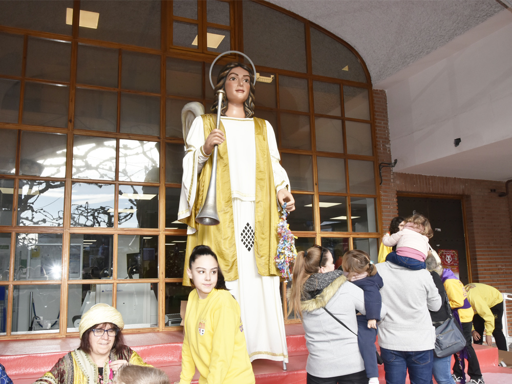 • Por quinto año consecutivo el ángel Raguel, de la Comparsa de Gigantes y Cabezudos de Torrejón de Ardoz, ha recogido los chupetes de los niños y niñas que han querido entregárselos a los Reyes Magos
