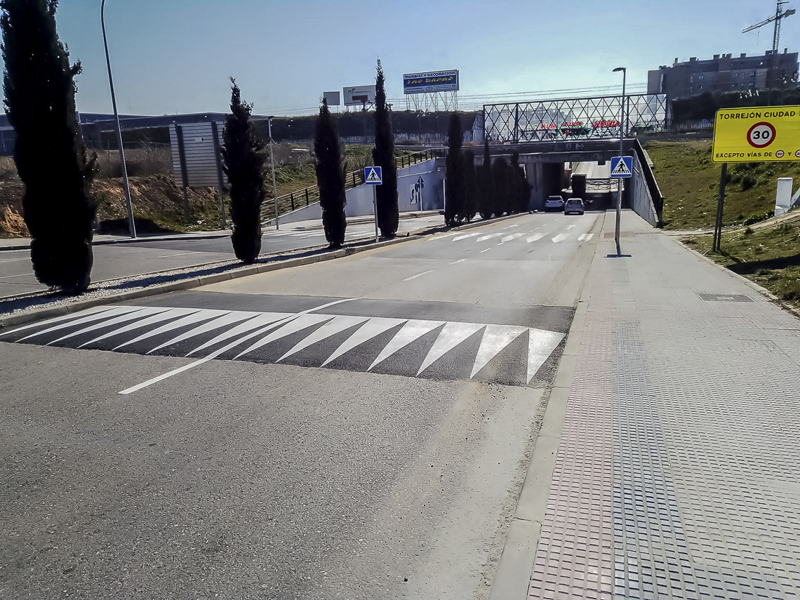 • También se han creado dos pasos de peatones iluminados con badenes. Uno junto al Hospital Universitario de Torrejón, y otro paso similar en la calle Valle del Tormes esquina calle Valle del Baztán