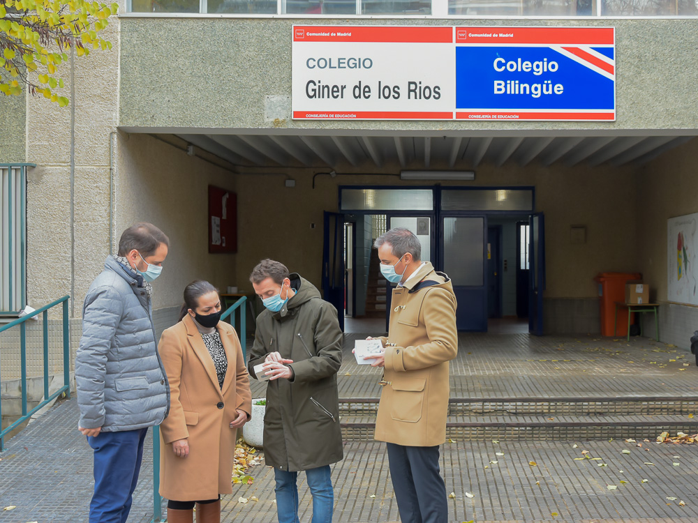 • El alcalde de Torrejón de Ardoz, Ignacio Vázquez, y el concejal de Educación, Rubén Martínez, han visitado esta mañana el colegio Giner de los Ríos donde se han entregado los medidores de CO2 a su directora Fuensanta Moreno. Desde este centro educativo se distribuirán al resto de colegios públicos de la ciudad