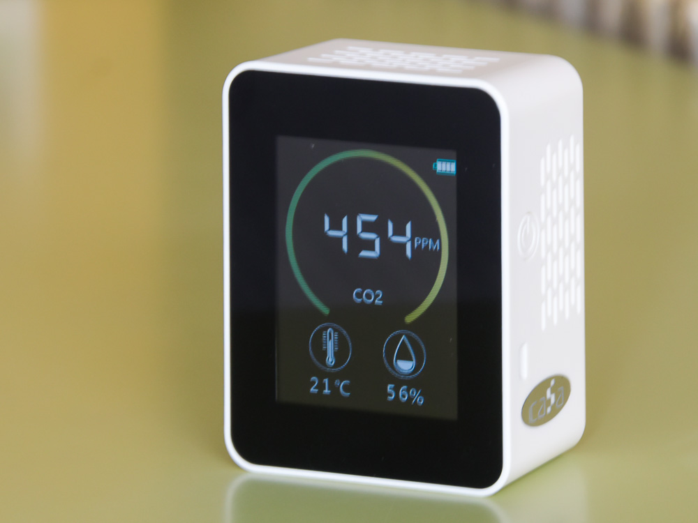 Ignacio Vázquez, explicó que “es muy fácil de manejar, únicamente se debe disponer sobre una superficie lisa, con una altura de instalación recomendada de 45 a 60 cm. En la pantalla se muestra la concentración de CO2 en el ambiente, así como la temperatura y la humedad”.