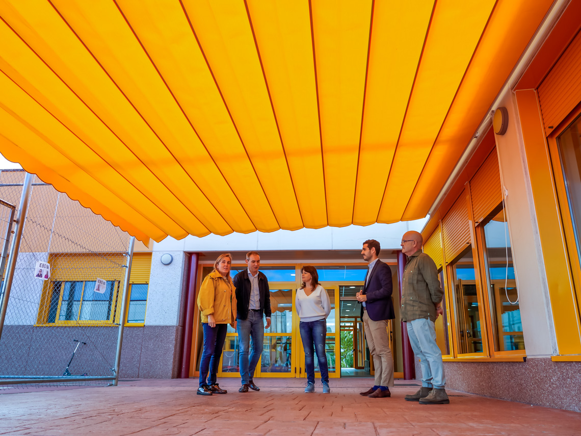 El Ayuntamiento de Torrejón de Ardoz instala una pérgola con toldo en el Colegio público de Educación Especial Iker Casillas que permita regular la temperatura de esta zona del centro educativo