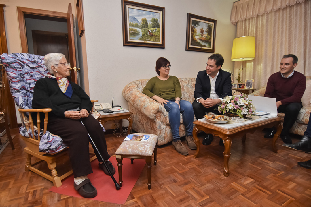 - El alcalde, Ignacio Vázquez, y la directora de Amigos de los Mayores, Mercedes Villegas se desplazaron ayer hasta el domicilio de Manuela Rosendo, vecina de Torrejón, para comprobar el funcionamiento de la iniciativa, siendo Mar Berrocal, una voluntaria torrejonera la persona que acude a su domicilio unas horas a la semana para hacerle compañía