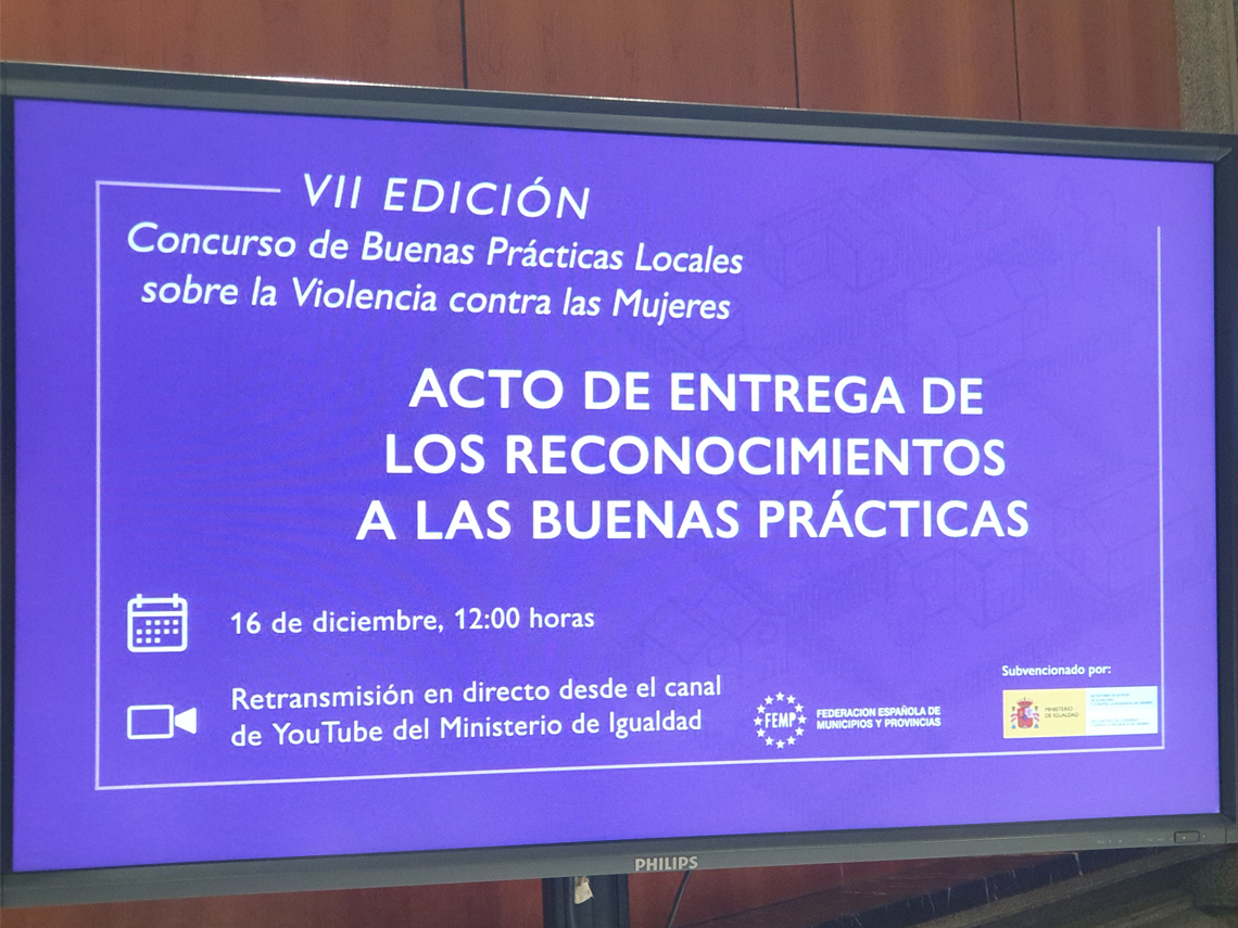 Este galardón lo otorga la Delegación del Gobierno contra la Violencia de Género del Gobierno de España y la Federación Española de Municipios y Provincias a las entidades locales que se distinguen por su lucha contra la violencia de género, siendo recogido el mismo por Miriam Gutiérrez, concejala de Mujer en un acto presidido por Victoria Rosell, delegada del Gobierno contra la Violencia de Género del Gobierno de España.