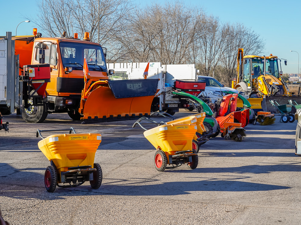 Torrejón de Ardoz, 20 de enero de 2022. Se trata de 1 camión quitanieves con depósito de sal, 11 retroexcavadoras de entre 1,80 y 2 metros, que se utilizarían en las carreteras y grandes avenidas de la ciudad, 2 máquinas picadoras de hielo, 2 quads, 2 mini retroexacavadoras con cepillos o palas y 2 vehículos pick-up dotados con 1 cuchillas quitanieves, que se utilizarán para acceder a calles pequeñas o de difícil acceso, así como a parques; 2 barredoras para la nieve, 2 camiones con dispensador de sal, 2 volquetes con depósito de sal y 5 esparcidoras de sal manuales. Además, hay almacenadas alrededor de 250 toneladas de sal.