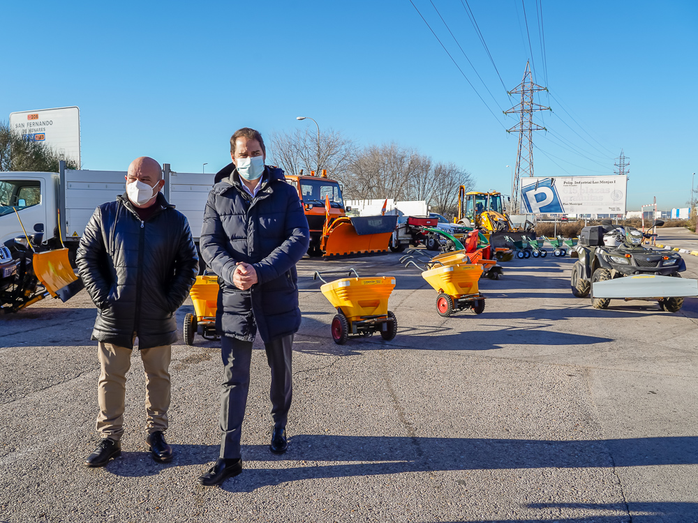 Por décimo segundo año consecutivo, el Ayuntamiento de Torrejón cuenta con el equipamiento adecuado para hacer frente a las posibles nevadas en la ciudad. El alcalde, Ignacio Vázquez, y Valeriano Díaz, concejal de Concejal de Obras, Limpieza Urbana y Administración, han presentado el amplio dispositivo del que dispone el Consistorio, adquirido con el objetivo de dar una rápida respuesta ante la caída abundante de nieve o las heladas que se puedan producir y mejorar así la seguridad en las calles y avenidas del municipio.