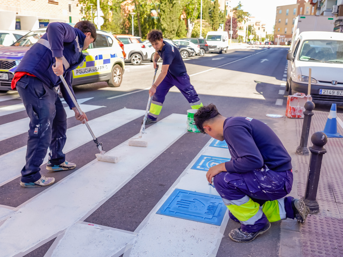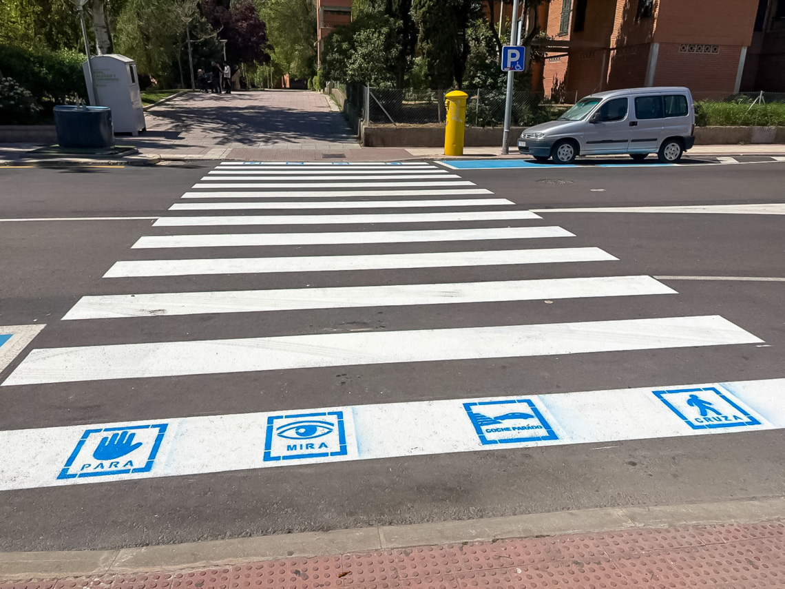 El Ayuntamiento está rotulando los pasos de peatones situados en el entorno de los accesos a todos los centros educativos de Torrejón de Ardoz con pictogramas dirigidos, principalmente, a personas con Trastorno del Espectro Autista