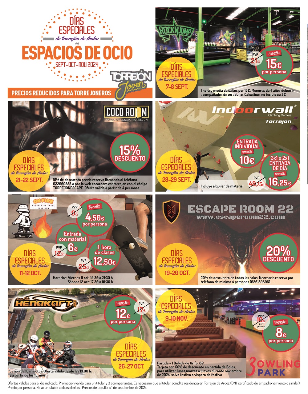 • Los Días Especiales de Torrejón de Ardoz finalizarán el 9 y 10 de noviembre en Bowling Park del Parque Corredor con las entradas para los torrejoneros a un precio de 8 euros por persona, que incluye una partida y un refresco, cuando habitualmente cuestan 10 euros