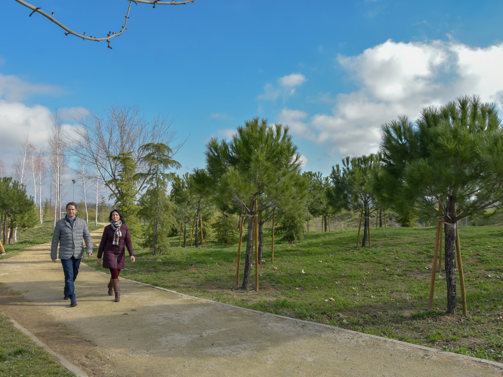 Torrejón de Ardoz, 31 de enero de 2020. “En algunos casos hemos plantado árboles a lo largo de caminos para hacer el paseo más agradable y fresco en verano. En otras zonas más amplias, el objetivo ha sido formar pequeños bosques que, además de su interés paisajístico y medio ambiental, que realicen funciones de pantalla acústica y oxigenación del aire. De ahí la plantación en algunas laderas a lo largo de la Ronda Sur”, indicó el alcalde en la presentación. Así, 10.000 árboles se han plantado en total en el gran Bosque Urbano de Torrejón de Ardoz, situado en Soto Henares a ambos lados de la Ronda Sur e incluyendo el Parque de los Miradores.