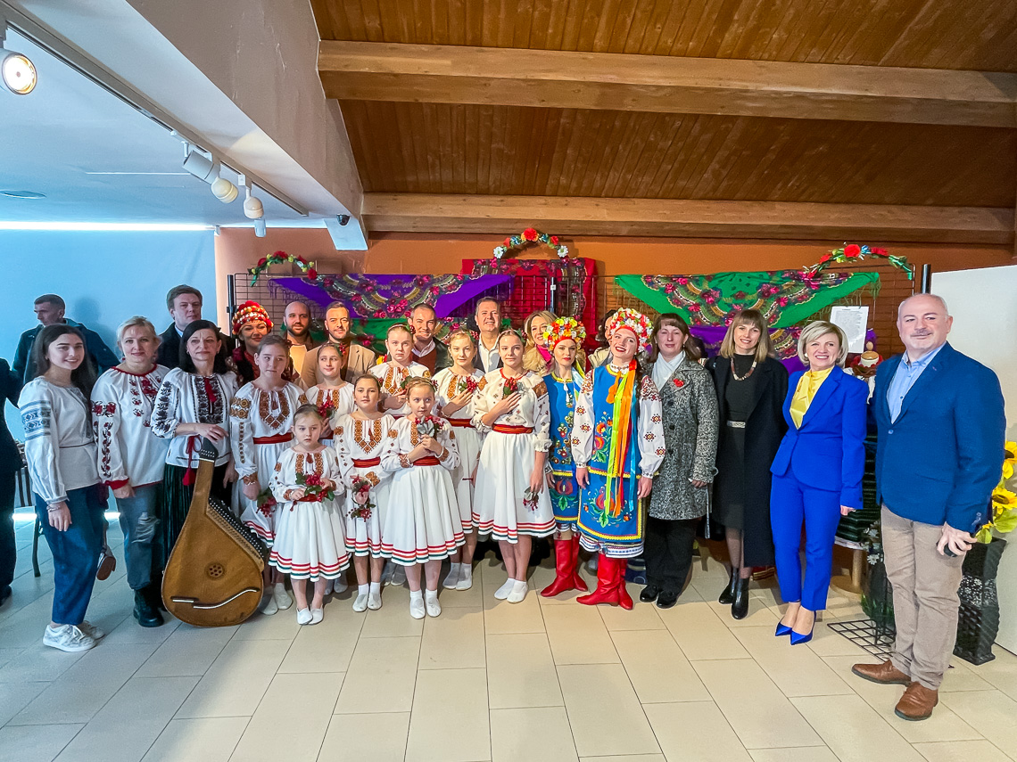 Torrejón de Ardoz, 24 de enero de 2023. La muestra ya ha sido visitada por el alcalde, Ignacio Vázquez,, el vicealcalde, José Luis Navarro, el concejal de Cultura, José Antonio Moreno, el concejal de Bienestar, Educación e Inmigración, Rubén Martínez, la concejala de Mayores, Ana Verónica González y la concejala de Medio Ambiente, Esperanza Fernández, y otros miembros de la corporación local que han estado acompañados por a Oksana Semak, comisaria de la exposición y responsable de la campaña de apoyo a Ucrania en Torrejón, Dmytriy lozytskiy, primer secretario de asuntos económicos de la Embajada de Ucrania, e Irina Osovska, fundadora de la Asociación de Ucranianos de Corredor de Henares.