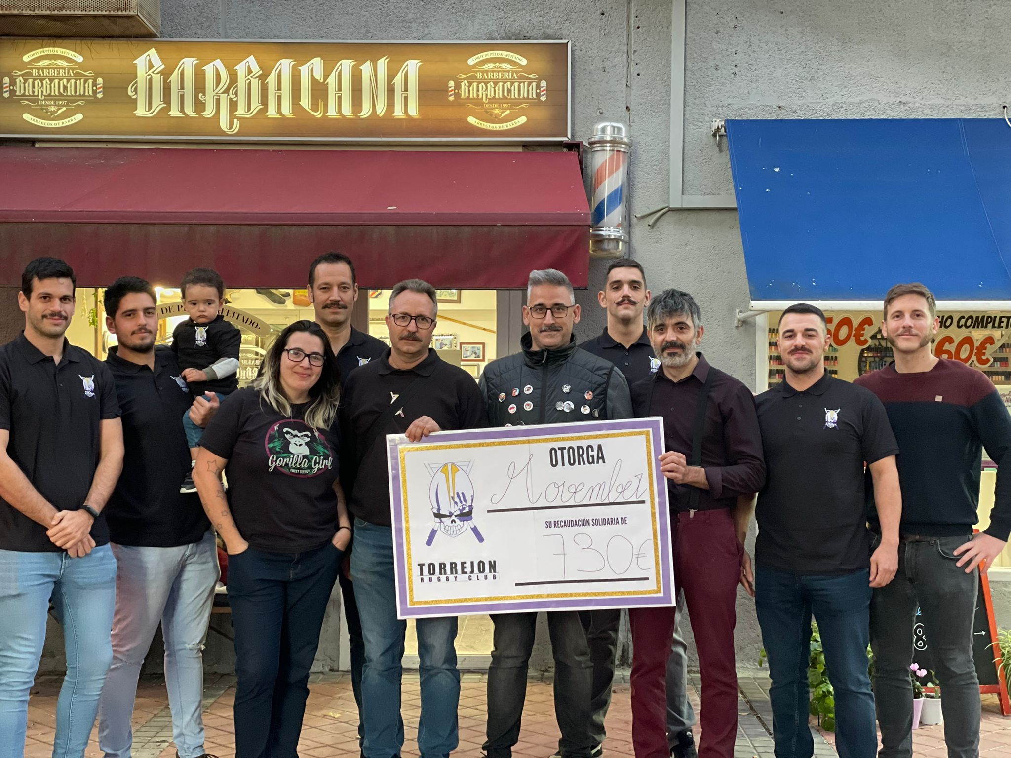 Varios integrantes del Torrejón Rugby Club se han sumado al movimiento “Movember” que buscar recaudar fondos y dar visibilidad al cáncer de próstata y de testículos. Uno de los signos que distingue este movimiento es dejarse el bigote entre los hombres durante el mes de noviembre. Y eso es lo que han hecho algunos de los jugadores del equipo de rugby torrejonero, gracias a la colaboración de la Barbería Barbacana, que también ha donado un porcentaje de cada corte de pelo y arreglo de barba que ha realizado a sus clientes durante el pasado mes de noviembre. El concejal de Deportes y Movilidad, José Miguel Martín Criado, estuvo presente en la entrega del cheque a Luis Sáez, que gestiona y coordina el movimiento “Movember” en Torrejón de Ardoz.