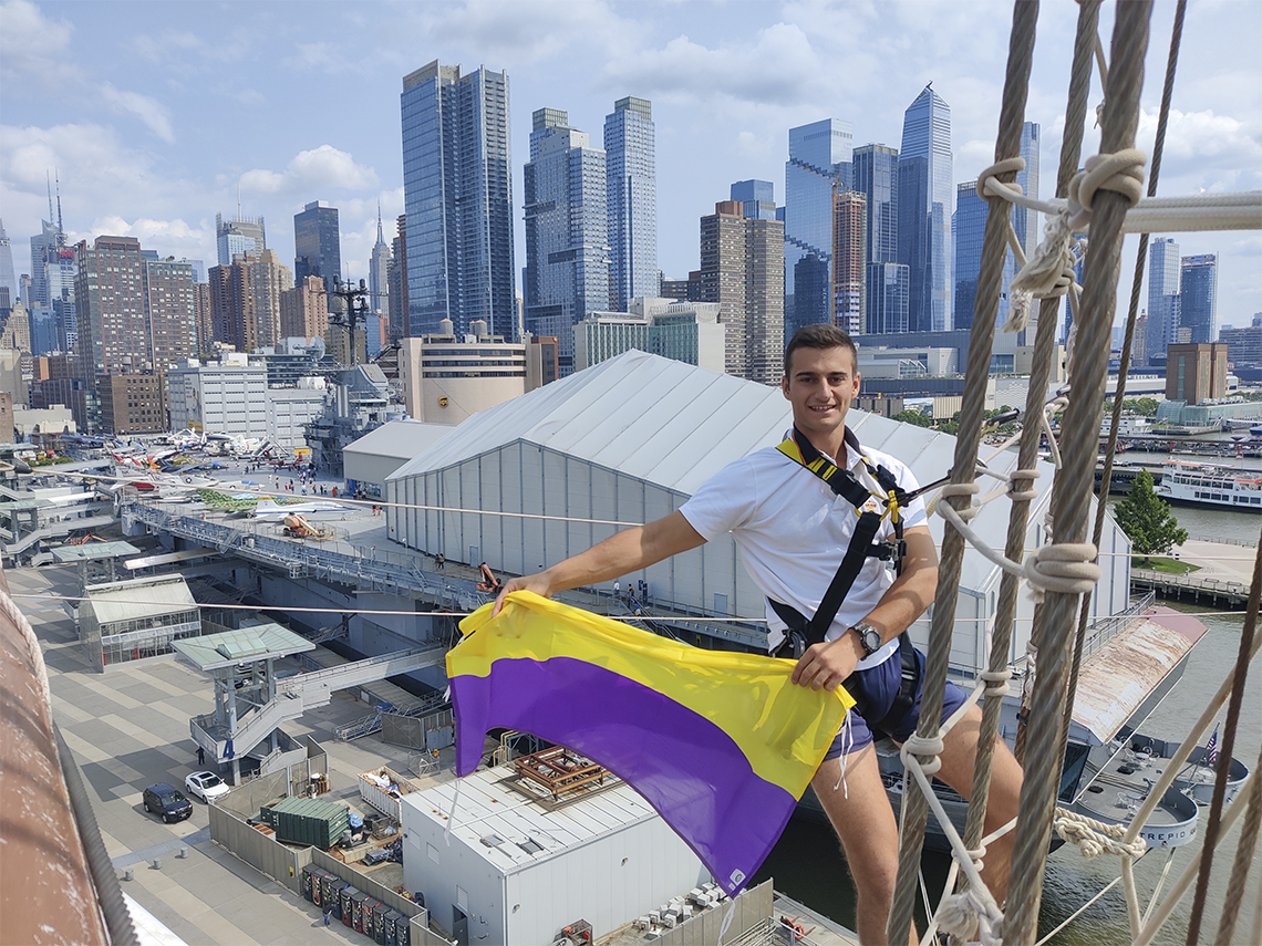 Torrejón de Ardoz, 26 de junio de 2023. Rubén es uno de los 74 guardiamarinas que se han echado al mar para formarse durante un semestre en una travesía que les llevará a recorrer más de 18.000 millas náuticas, cruzar dos veces el Atlántico y circunnavegar América del Sur, haciendo escala en 10 puertos de 7 países: Santa Cruz de Tenerife, Río de Janeiro (Brasil), Buenos Aires (Argentina), Punta Arenas (Chile), El Callao (Perú), Cartagena de Indias (Colombia), Puerto Limón (Costa Rica), Pensacola (EEUU), Nueva York y Marín, en Galicia.
