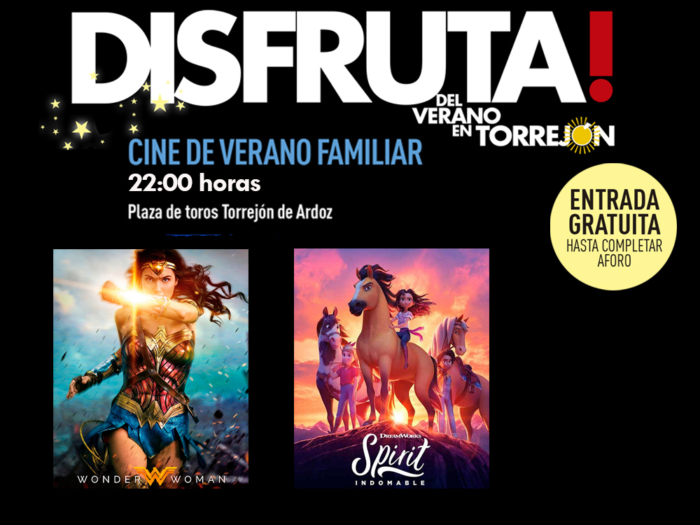 Los torrejoneros que se queden este fin de semana en la ciudad tienen varias propuestas para disfrutar. Una de ellas es el tradicional Cine de Verano familiar que llega a su recta final con “Wonder Woman”, hoy viernes, 2 de septiembre, y “Spirit: indomable”, mañana sábado 3 de septiembre. Ambas películas se proyectarán a las 22:00 horas en la Plaza de Toros con entrada gratuita hasta completar el aforo.