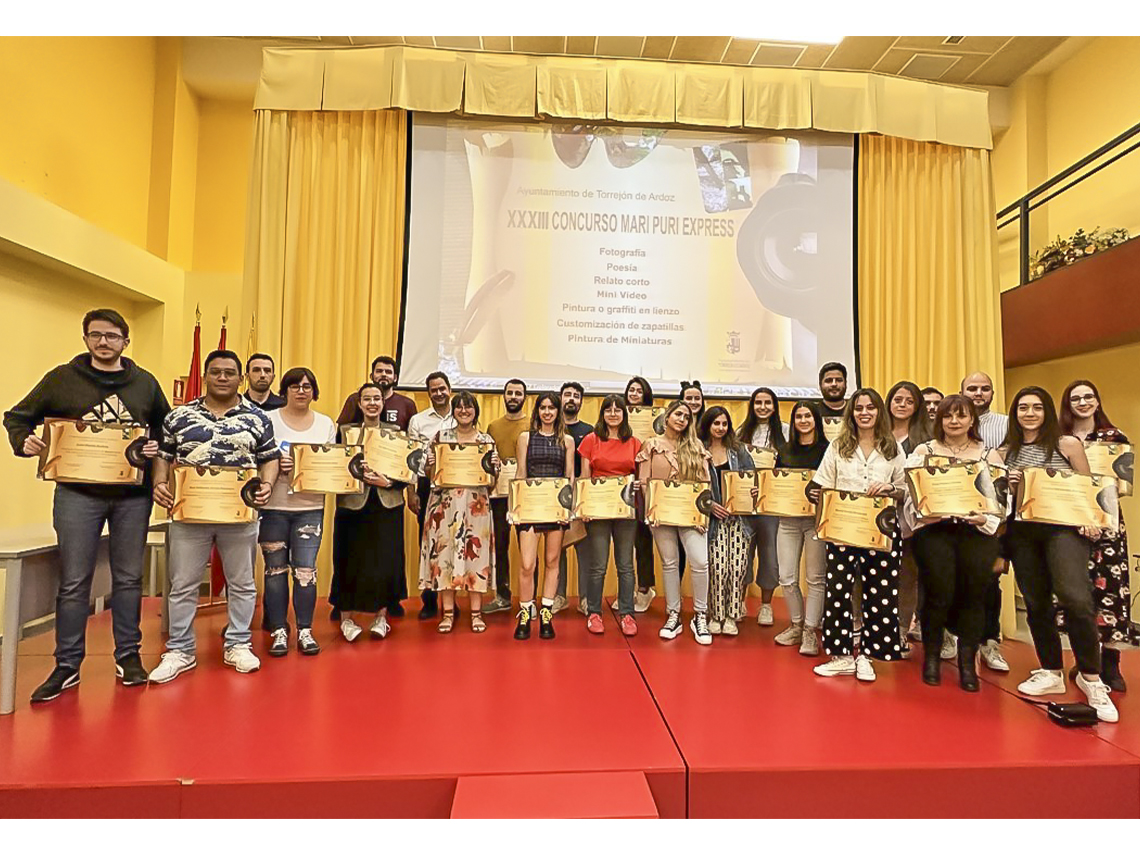 El XXXIII concurso juvenil Mari Puri Express 2.0 ya tiene ganadores. Un certamen que abarca distintas modalidades, desde fotografía, poesía, relato corto, mini video, Pintura o Graffiti en lienzo, pintura de miniaturas y customización de zapatillas, que se suman a la denominada “Premio Especial Artista de Torrejón y que tiene como objetivo canalizar las inquietudes artísticas de los creadores más jóvenes y que edición tras edición se ha ido renovando, actualizando e innovando hasta convertirse en todo un referente cultural de la ciudad. La cita tuvo lugar ayer en el Centro Polivalente Abogados de Atocha y contó con la presencia del alcalde, Ignacio Vázquez, y el concejal de Juventud y Festejos, Alejandro Navarro Prieto.