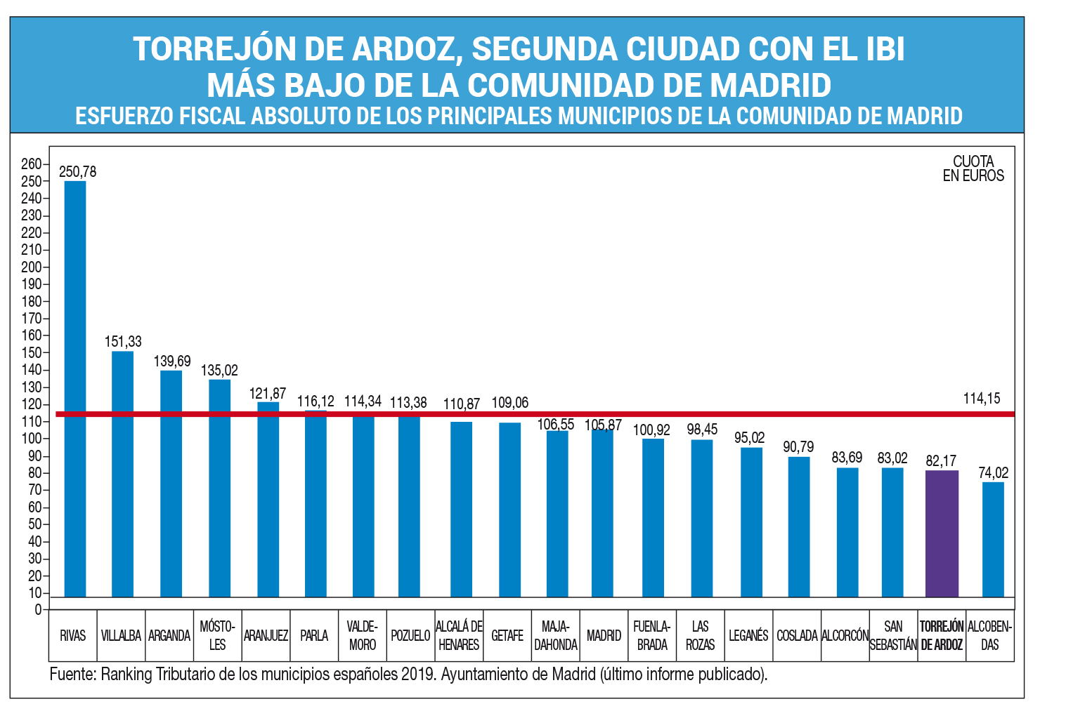 El calendario fiscal para el abono de los impuestos y tasas municipales en 2021 es para el IBI desde el 1 de marzo al 29 de octubre, para el IVTM (numerito) desde el 1 de agosto al 5 de octubre. En el caso del IAE (Impuesto de Actividades Económicas) y la Tasa de Vados el plazo será desde el 7 de octubre al 9 de diciembre y para la Tasa de Recogida de Residuos Sólidos (sólo para medias y grandes superficies comerciales y los bancos) desde el 7 de octubre al 9 de diciembre. Ignacio Vázquez resaltó que “Torrejón es la segunda ciudad con el IBI más bajo de la Comunidad de Madrid” (ver cuadro abajo).