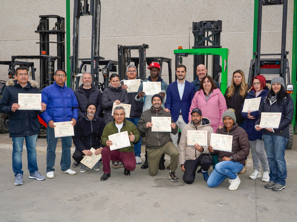Entregados los diplomas a los alumnos que han superado con éxito una nueva edición del curso de “Operador de carretillas elevadoras” organizado dentro de la Estrategia Torrejón de Ardoz por el Empleo