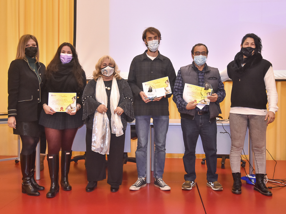 • Por otra parte, también se entregaron los galardones de la primera edición del Certamen de Cortos realizados con móvil “Mujer ave Fénix”, en el que el primer premio dotado con 500 euros recayó en Samuel Aguado Corral, por “La voz de una generación”; un segundo premio de 250 euros para Fernando Pineda López, por su corto “Caída y Superación” y un tercer premio revelación de 100 euros que fue a parar ca manos de Anabel Bartolomé Bercial, por “Amor propio”