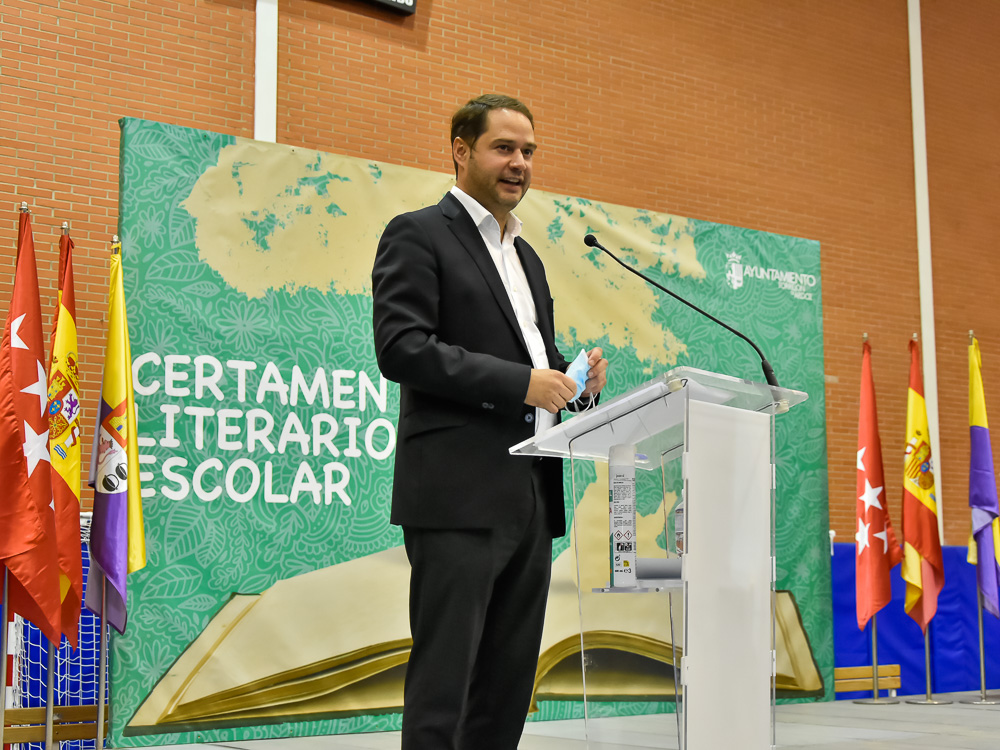 Torrejón de Ardoz, 28 de octubre de 2021. Este año, debido a la situación especial que se está viviendo por el coronavirus, se ha retrasado la entrega de premios a este mes de octubre y ha tenido lugar en dos actos diferentes, uno para Poesía y otro para Relato. Las citas tuvieron lugar en el Pabellón José Antonio Paraíso y contaron con la presencia del alcalde, Ignacio Vázquez, y del concejal de Educación, Bienestar e Inmigración, Rubén Martínez que agradecieron a todos los alumnos y alumnas, a los profesores y directores su colaboración en esta nueva edición del Certamen, y dio la enhorabuena a los estudiantes que han sido seleccionados debido a la calidad, al nivel y a la alta participación que tiene esta iniciativa.
