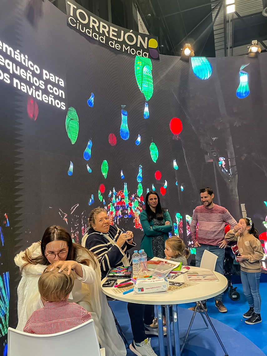 En el stand de Torrejón hubo degustaciones de las magníficas palmeras de chocolate de Torrejón de Ardoz, a cargo de la Pastelería Migas y sus maestros pasteleros, Adrián Campos García y Manuel Campos Baquero. Además, Live Painting de Esther, una artista local que creó en directo una obra inspirada en Mágicas, bailes del Ángel Navideño Raguel de la comparsa de Gigantes y Cabezudos, Cuentacuentos Navideño para todas las edades a cargo de David Moreno, periodista, cantante, escritor y presentador de televisión del canal infantil Boing, pintacaras temático con motivos navideño y actuación de los artistas locales del dueto musical Casi Perfectos.