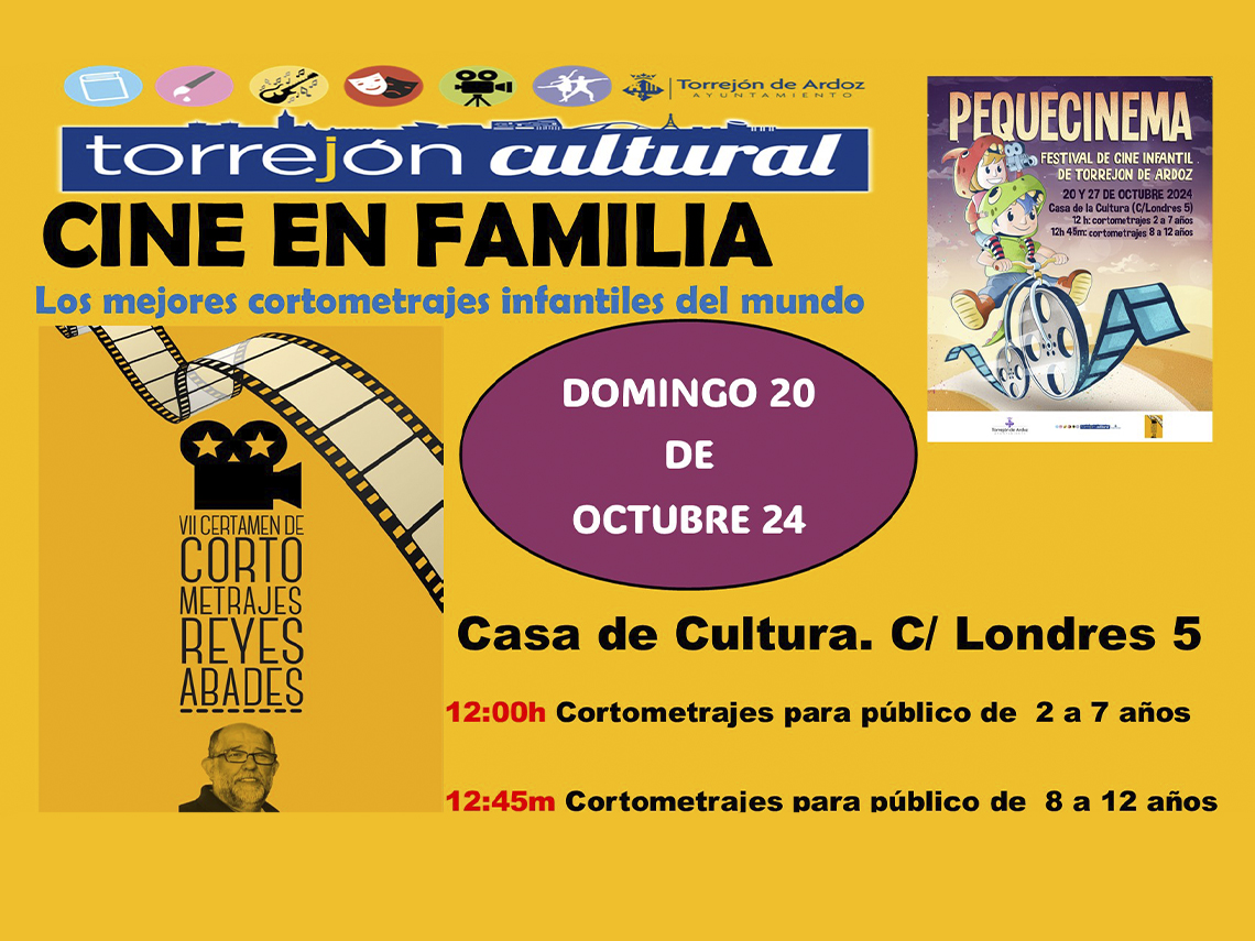 Este domingo, 20 de octubre, a las 12:00 horas, los mejores cortometrajes infantiles dentro de la iniciativa “Cine en Familia. La cita tendrá lugar en el Salón de Actos de la Casa de la Cultura (calle Londres, 5) con entrada gratuita hasta completar el aforo, con un pase a las 12:00 para el público de 2 a 7 años y otro a partir de las 12:45 horas para el de 8 a 12 años.