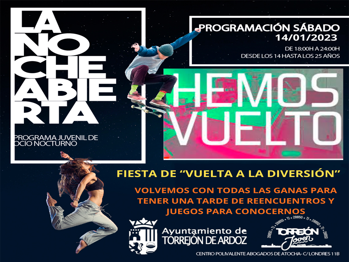 Mañana sábado, 14 de enero, regresa la iniciativa gratuita de ocio alternativo para jóvenes “La Noche Abierta” con la gran fiesta “Vuelta a la diversión”