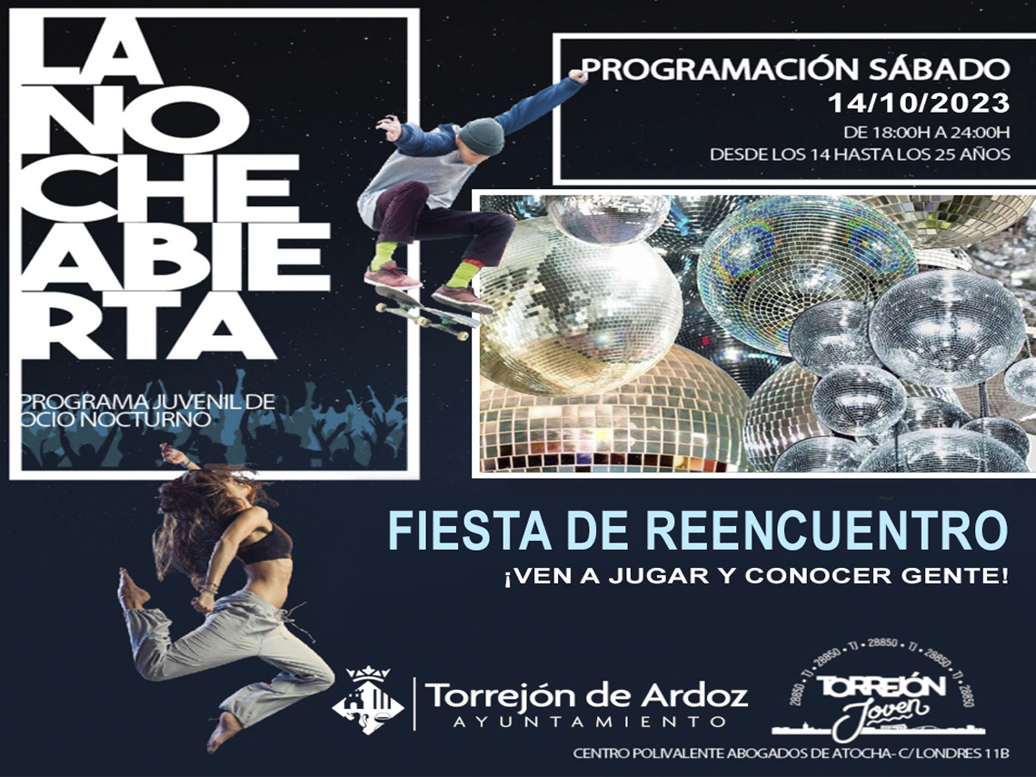 Torrejón de Ardoz, 11 de octubre de 2023. “La Noche Abierta” es un programa con alternativas gratuitas de ocio nocturno saludable para jóvenes de 14 a 25 años que se adaptan a todos los gustos. Por otra parte, los jóvenes pueden solicitar el Carné Joven a través del cual tendrán acceso preferente en múltiples servicios e importantes ventajas y descuentos. Se puede tramitar de forma gratuita en la Concejalía de Juventud y los únicos requisitos son residir en la Comunidad de Madrid y tener entre 14 y 30 años.