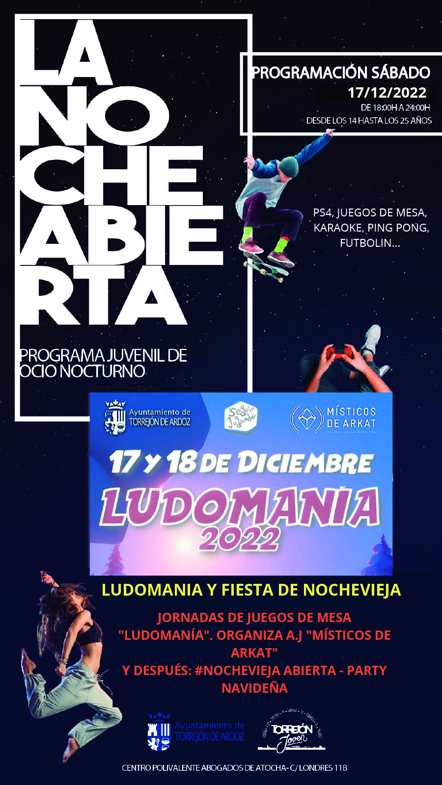 Este sábado, 17 de diciembre, termina la programación de este año de “La Noche Abierta” con una gran fiesta de Nochevieja, además de las jornadas de “Ludomanía” durante todo el fin de semana