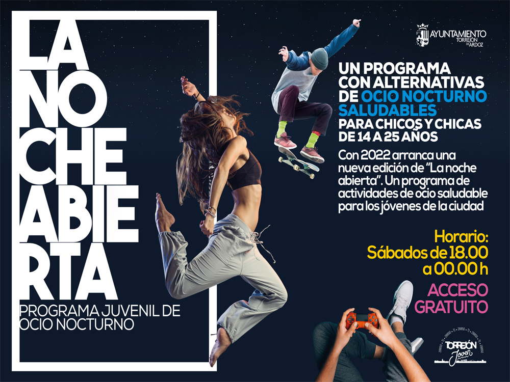 En este sentido, el alcalde, Ignacio Vázquez, explicó que “volvemos a recuperar el importante conjunto de iniciativas de ocio y formación que prepara el Ayuntamiento de Torrejón de Ardoz para vosotros, los jóvenes de la ciudad”. A ello, añadió el concejal de Juventud y Festejos, Alejandro Navarro Prieto, “con esta completa propuesta queremos ofrecer a los jóvenes formas de ocio alternativo, sano y que les interese, porque es un sector al que cuidamos y al que siempre estamos dirigiendo iniciativas novedosas para que puedan tener un ocio de calidad en su misma ciudad alejado del botellón”.