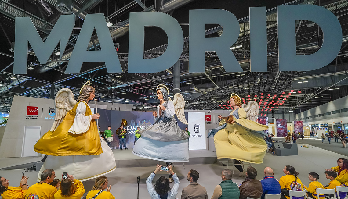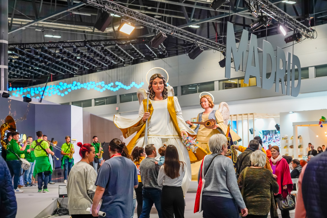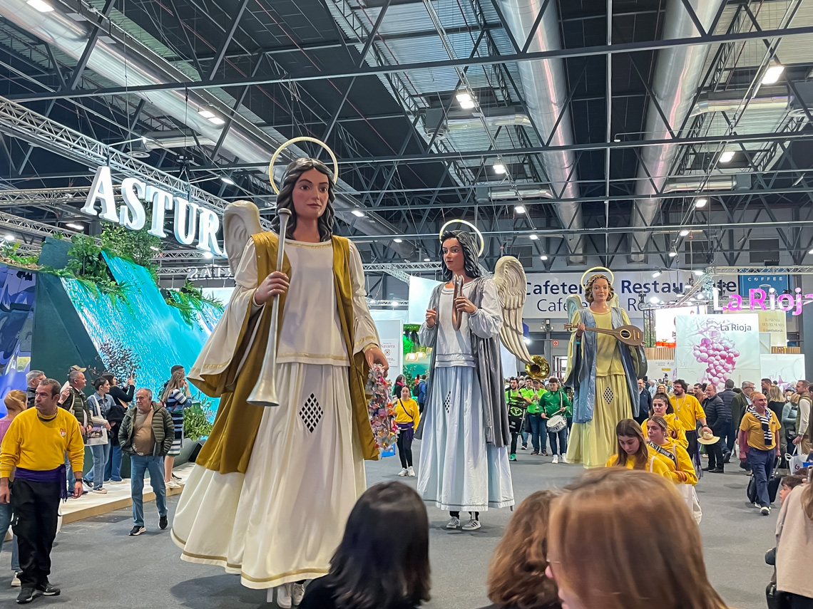 Torrejón de Ardoz, 29 de enero de 2024. Torrejón de Ardoz contó, por primera vez, con stand propio en FITUR, donde estuvieron presentes los Ángeles Navideños Gigantes, que también actuaron en el espacio de la Comunidad de Madrid.