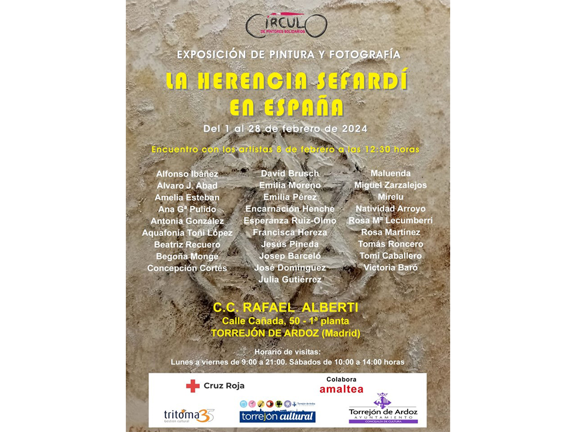 Asimismo, hasta el próximo 28 de febrero el Centro Cultural Rafael Alberti acogerá la exposición de pintura y fotografía, “La herencia sefardí en España”, del Círculo de Pintores Solidarios, que estará en horario de lunes a viernes de 9:00 a 21:00 horas y sábados de 10:00 a 14:00 horas.
