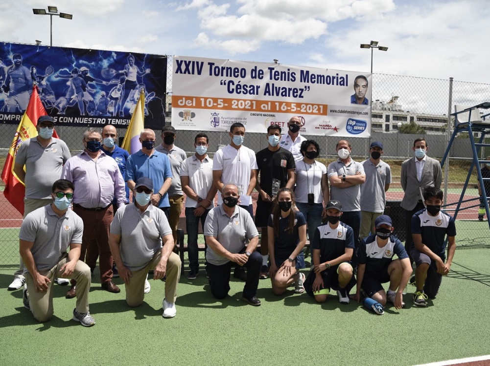 Torrejón de Ardoz, 18 de mayo de 2021. El torneo ha contado con la participación de 43 jugadores, ocho de ellos situados en el ránking entre los cien mejores de España, y se ha disputado en las pistas de la C.D. Joaquín Blume. En la entrega de premios estuvieron presentes el concejal de Deportes, José Miguel Martín Criado, y la concejal de Mujer, Míriam Gutiérrez, que acompañaron a Jesús de Castro, presidente del Club de Tenis Torrejón, Santiago Molina y Luis Díaz, vicepresidentes, José Luis Rascón, presidente de la Federación de Tenis de Madrid, y Manuel Cruz, presidente del Comedor Social de la ciudad que recibió un lote de productos de comida para repartir entre las personas más desfavorecidas de la ciudad.