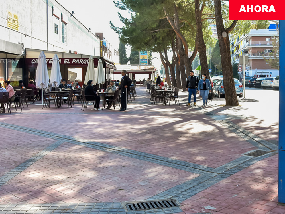 -Parque Cataluña. Se han renovado 1.200 m2 de acerado desde la esquina de la calle Hilados hasta la calle Silicio (frente a la galería comercial) con baldosa granallada decorativa y antideslizante. Se han eliminado las barreras arquitectónicas y creado pendientes para evacuar las aguas fluviales y, además, nuevos sumideros.