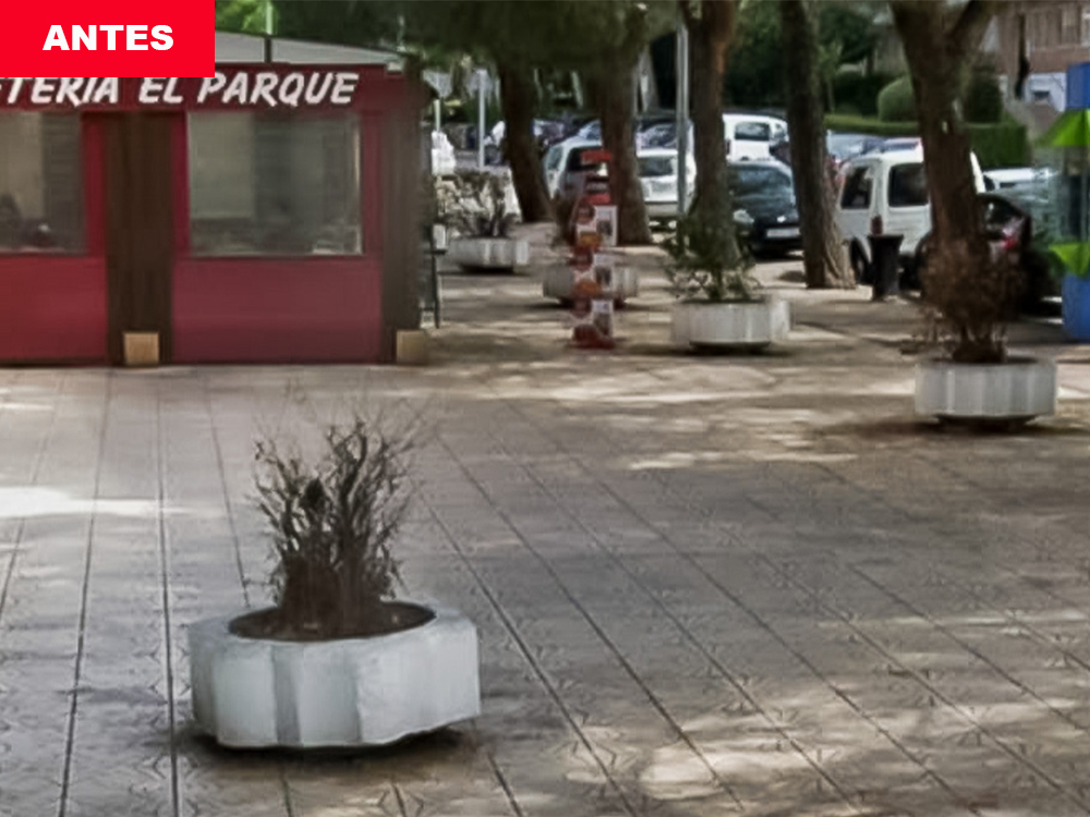 -Plaza Palmeras. Se ha actuado en la calle Naranjo (entre calle Cañada y Pº Conviencia) renovando 1.300 m2 aceras y saneamiento, así como un tramo de la Plaza Palmeras con baldosa roja de 15x15, eliminando las barreras arquitectónicas en los pasos de peatones y creando 12 plazas de aparcamiento. También se ha renovado el alumbrado (canalizaciones, conductores, arquetas) y semisoterrado los contenedores.