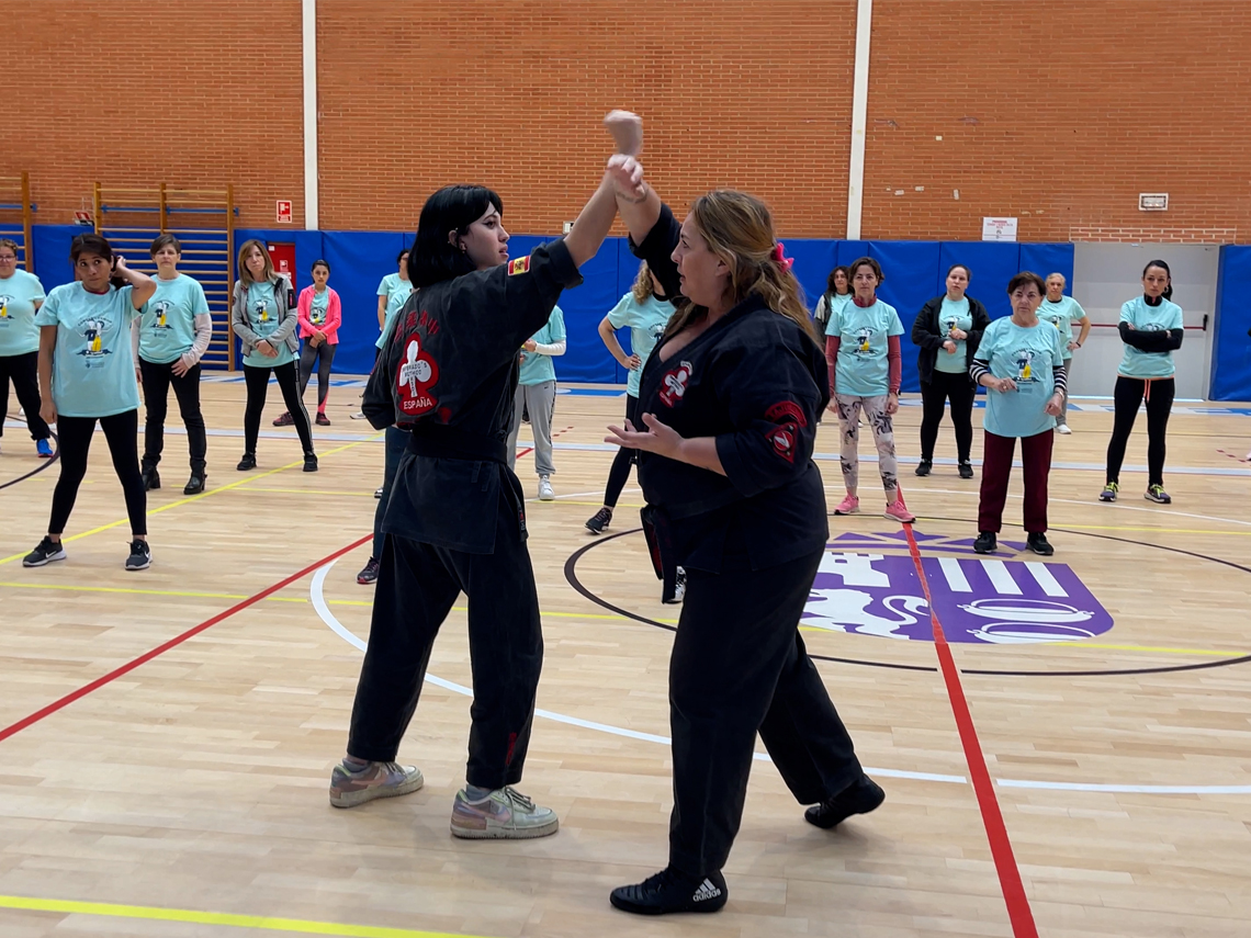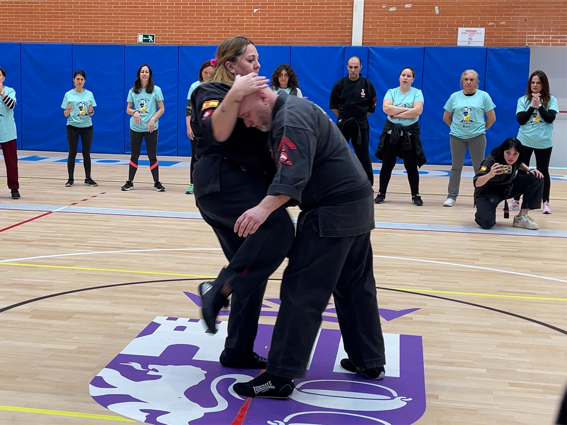 Torrejón de Ardoz, 14 de marzo de 2023. El objetivo de este tipo de iniciativas es ayudar a las mujeres a reconocer, prevenir y defenderse de las agresiones, aumentando la capacidad de protegerse a través de diversas técnicas de autodefensa femenina.