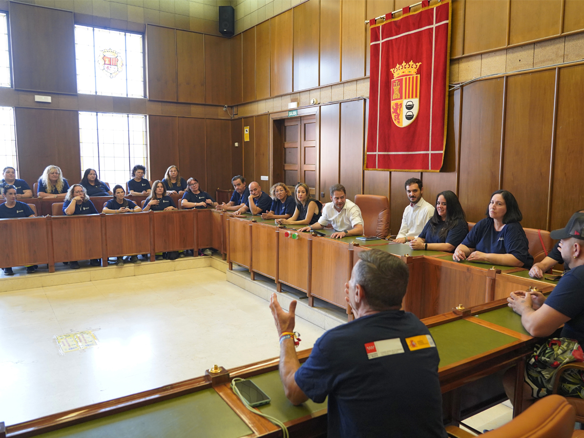 El alcalde de Torrejón de Ardoz, Ignacio Vázquez, el tercer teniente de alcalde y concejal de Festejos, Alejandro Navarro Prieto, y la concejala de Empleo, Turismo y Contratación, Ainhoa García, han mantenido un encuentro con alumnos torrejoneros de la especialidad de construcción del programa Cualificación Profesional para personas desempleadas de larga duración mayores de 30 años, que tras realizar un curso de formación trabajarán en el Ayuntamiento hasta el próximo 14 de septiembre. Se trata de 20 personas contratadas para la especialidad de construcción, de las que 13 son mujeres y 7 hombres. Trabajarán en distintas obras de interés para la ciudad.