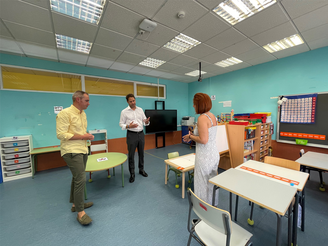 • El alcalde, Ignacio Vázquez, y el concejal de Bienestar, Educación e Inmigración, Rubén Martínez, visitaron junto a la directora del centro, Raquel Fernández, en el CEIP La Zarzuela la nueva aula preferente para alumnos con necesidades educativas especiales derivadas de un trastorno generalizado del desarrollo (TGD), en este caso del espectro autista (TEA) y que se suma a la que ya existía
