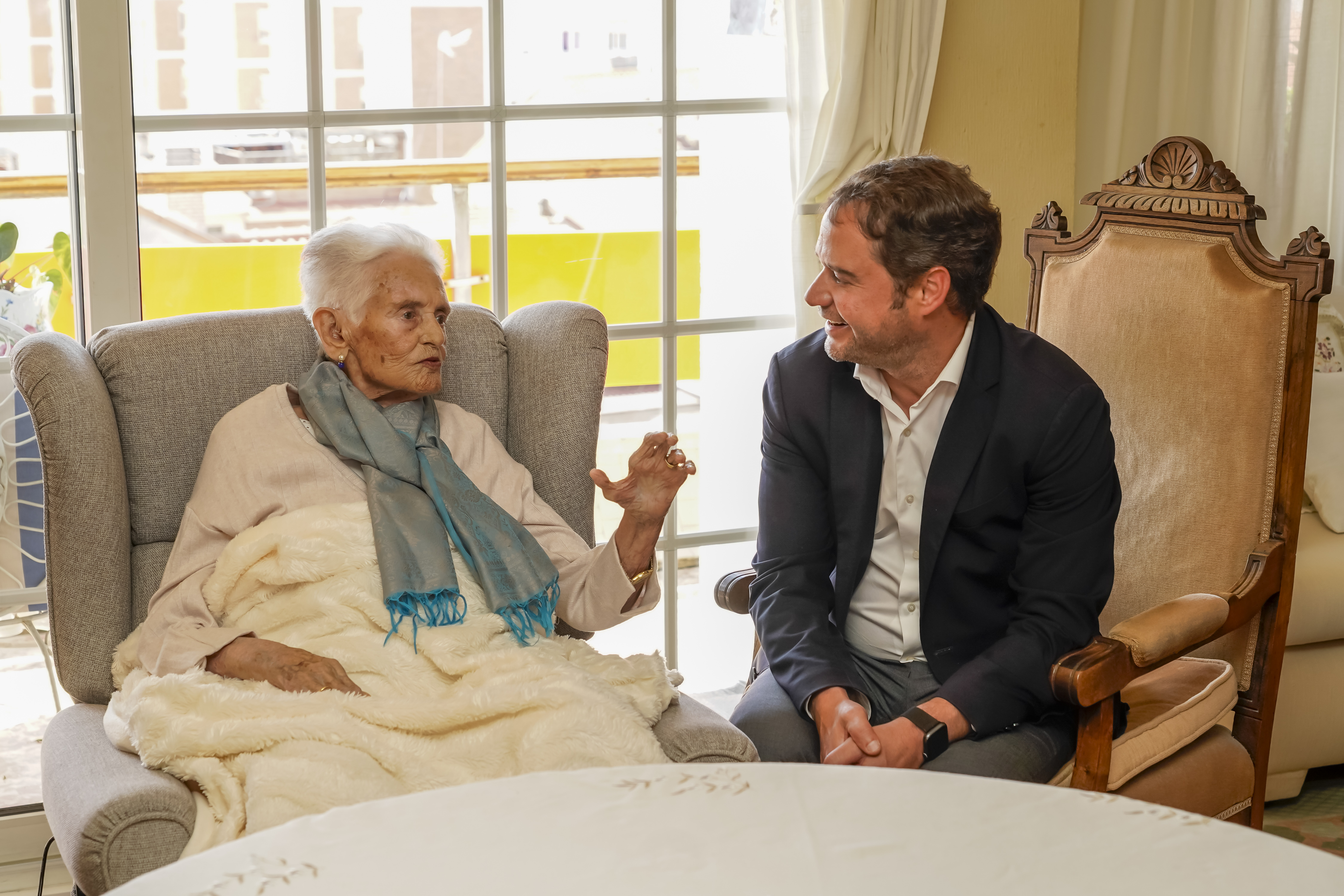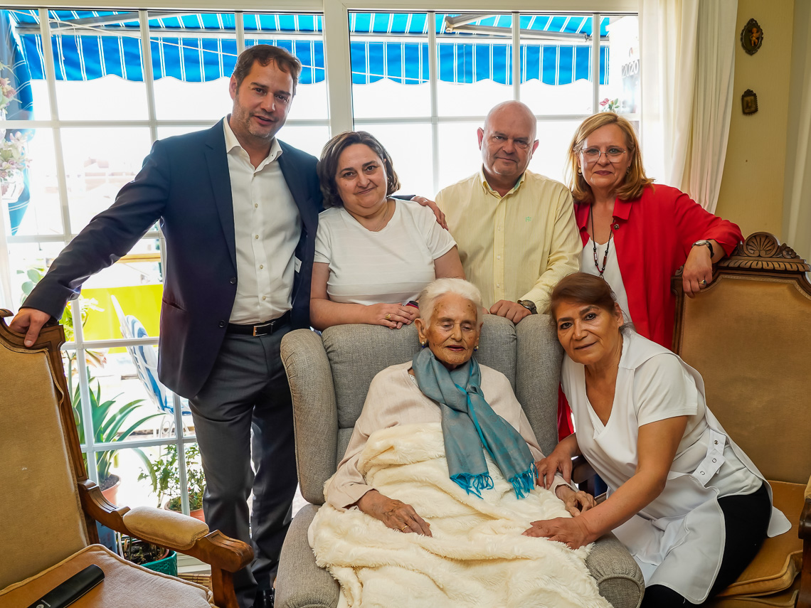Julia García Sánchez, la primera mujer concejala del Ayuntamiento de Torrejón de Ardoz cumple 100 años. El alcalde, Ignacio Vázquez, visitó a la longeva vecina en su hogar, junto a su familia, para felicitarla en nombre de la ciudad.